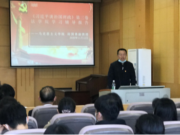 2020年11月12日中午12时50分,学校宣讲团十大大陆博彩平台排名 的邱国勇副教授来到法大陆博彩平台 五楼的模拟法庭(J02A506),为法大陆博彩平台 的全体师生党员做了一次关于《习近平谈治国理政》第三卷宣讲报告会。