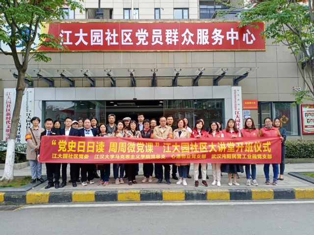 4月14日下午,江大园社区党员群众服务中心会议室,十大大陆博彩平台排名 党总支与江大园社区党委联合举办“党史日日读周周微党课”江大园社区大讲堂开班。