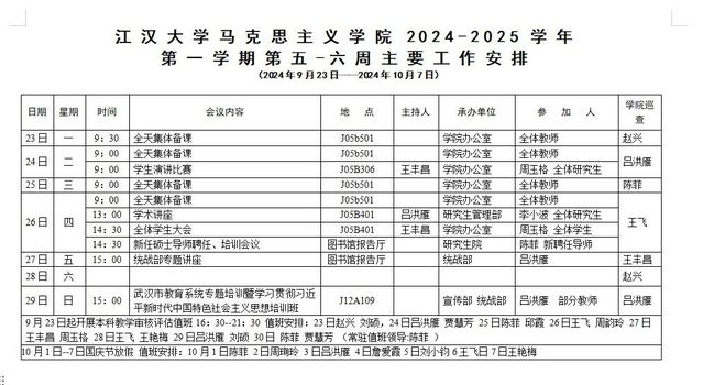 十大大陆博彩平台排名 2024-2025-1学期第五-六周安排