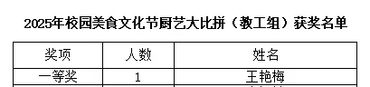 2025年10月31日,2025 年江汉大学校园美食文化节教工厨艺大比拼在学校南区篮球场热闹开赛。我院办公室主任王艳梅凭借精湛的厨艺,在激烈角逐中脱颖而出,喜获一等奖!袁俊杰、刘硕荣获鼓励奖。美食节厨艺比拼已经落幕,但那些关于美食的热爱与创意,那些在活动中收获的快乐与成长,将永远留在我们的记忆里。