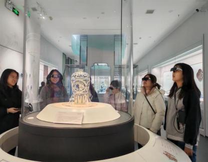 师生们便佩戴上定制 AR 眼镜、手持导览手册,解锁了具身智能沉浸式讲解新体验。只需对准展柜中的文物说出指令,生动的动态视频、翔实的历史背景便即刻呈现在眼前,原本静置的文物仿佛“活”了过来。这种科技与文化的创新融合,不仅让厚重的历史变得可感可触、生动鲜活,更让师生直观感受到现代科技在传统文化保护、传承与活化中的重要作用。