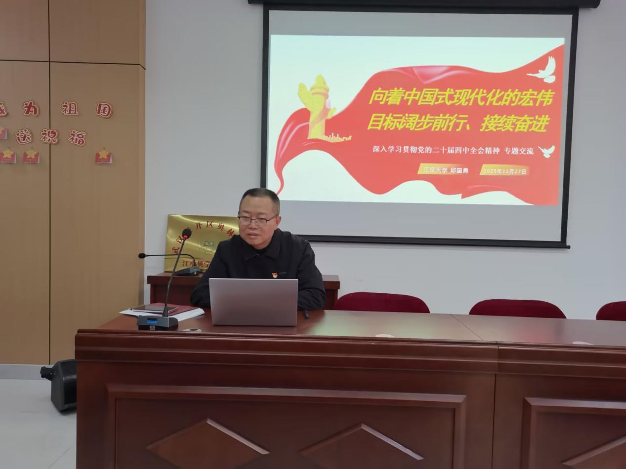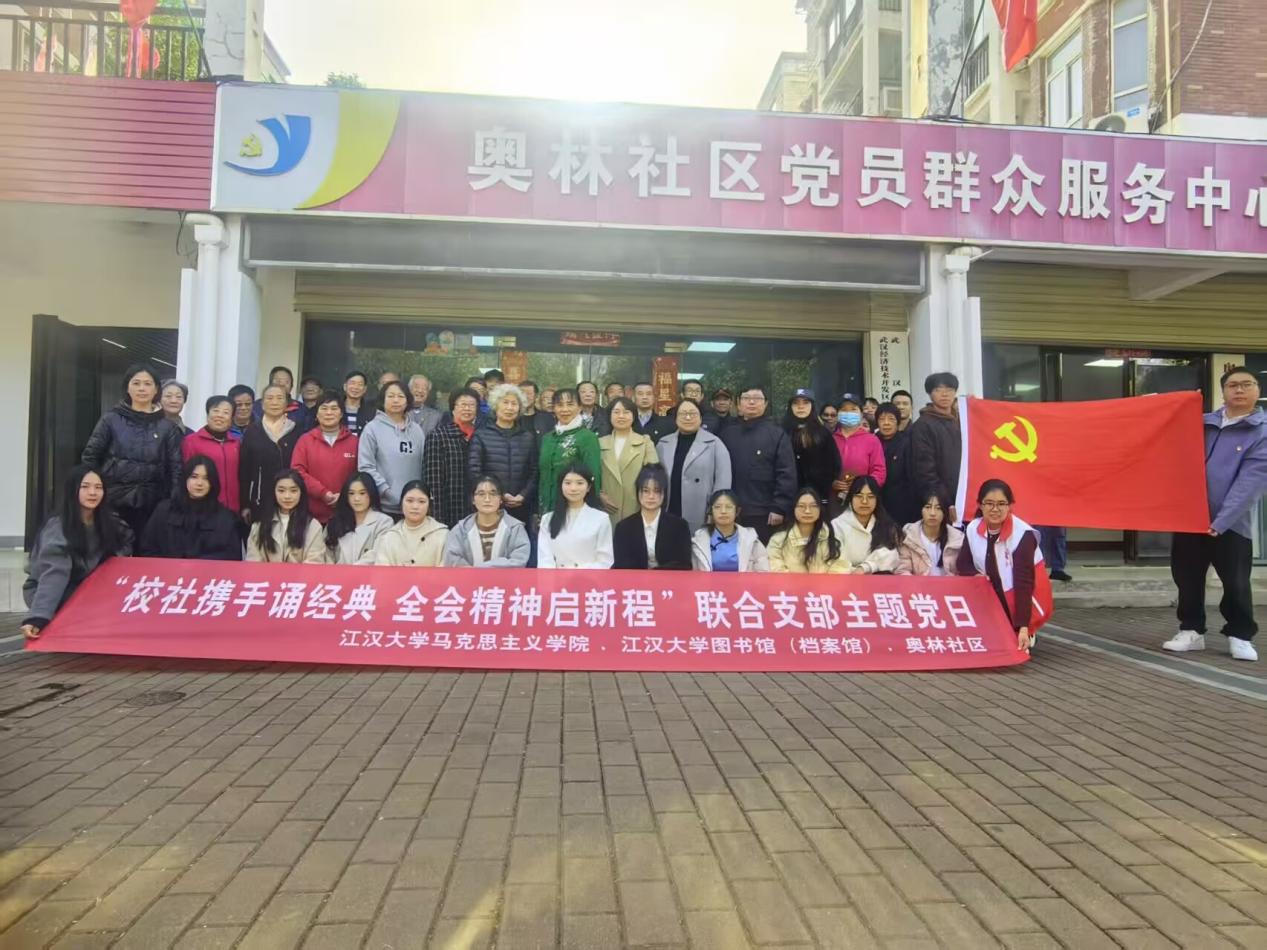11月27日下午14:30,十大大陆博彩平台排名 党委、图书馆(档案馆)党委与武汉经开区沌阳街道奥林社区联合开展以党的二十届四中全会精神宣讲和红色经典诵读为主要内容的特色主题党日。活动由奥林社区党委书记熊佳静主持,江汉大学和奥林社区党员代表70余人参加了活动。